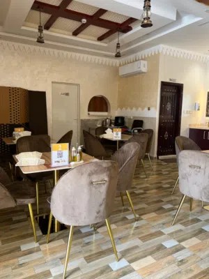 A fully equipped traditional restaurant in Al Khurair, Al Ain, offering turnkey operations with all licenses, equipment, and trained staff included. The restaurant features private Arabic-style seating and an outdoor seating area, ideal for investors or entrepreneurs seeking a ready-to-operate food business in a high-demand location.